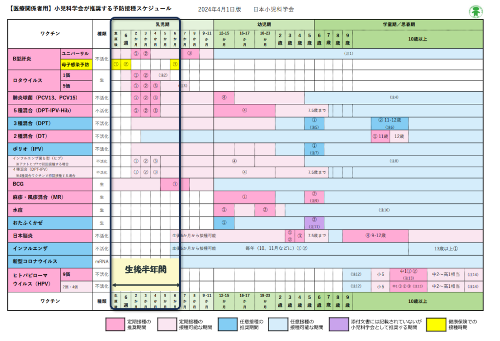 こちらは日本小児科学会が出している推奨予防接種スケジュールのなですが、こんなにあるんです!