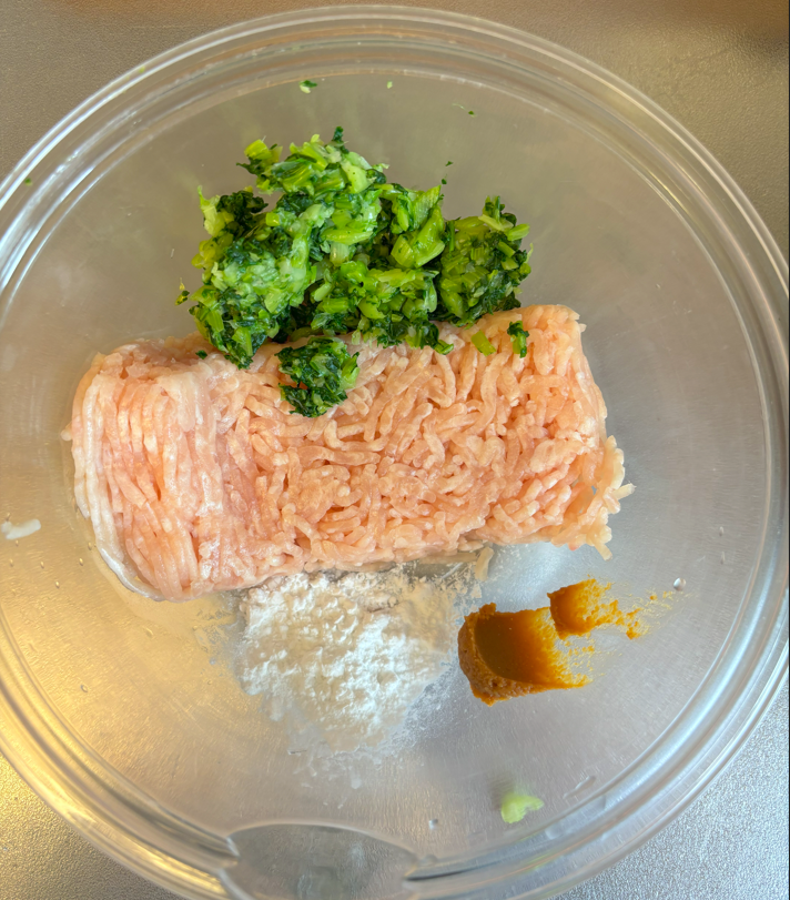 先ほどのチンゲン菜を含めて材料全部を混ぜ合わせます。