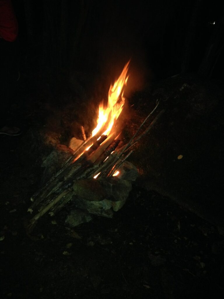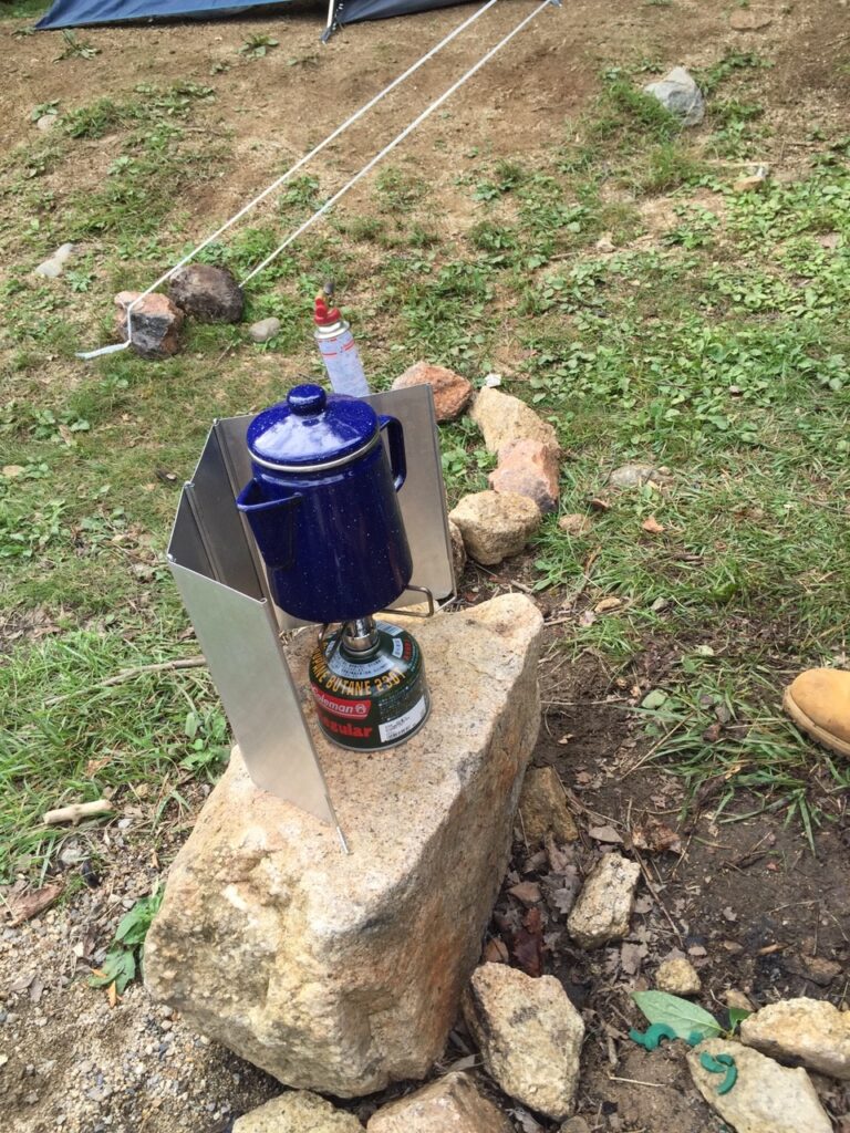 雨が降ってきたけどタープがなかったためブルーシートをひもで木に固定してしのいだり。