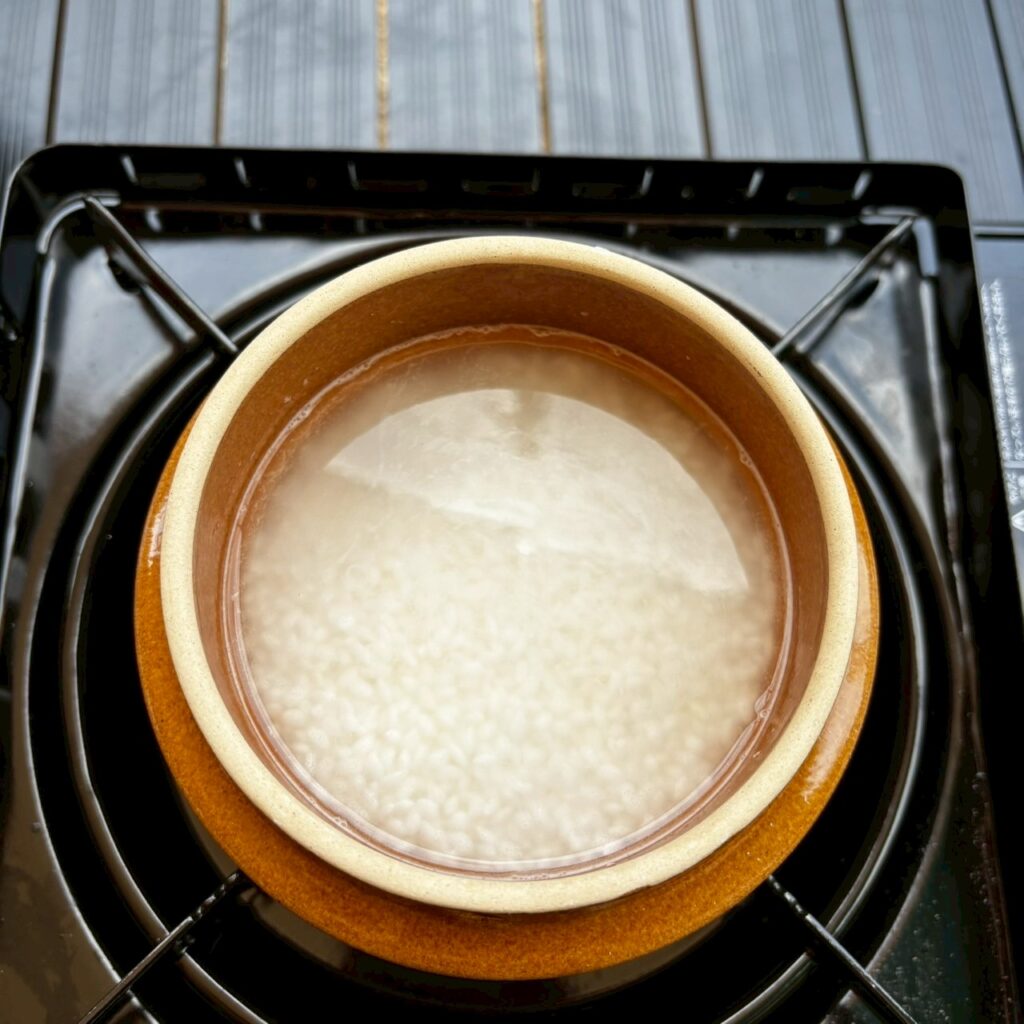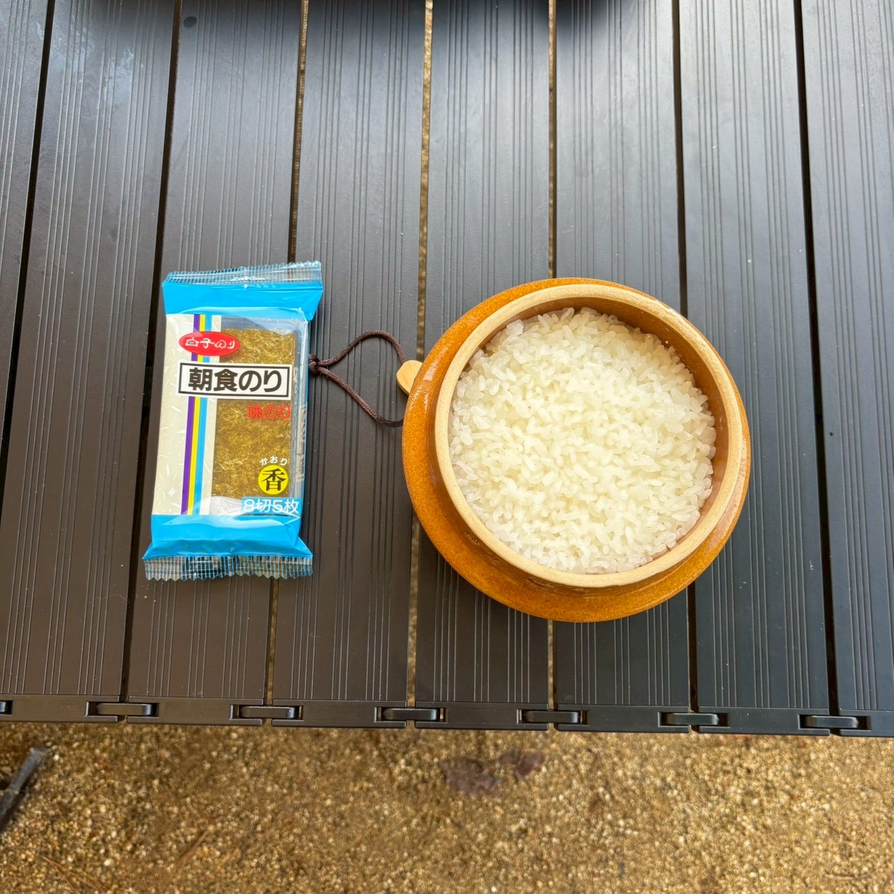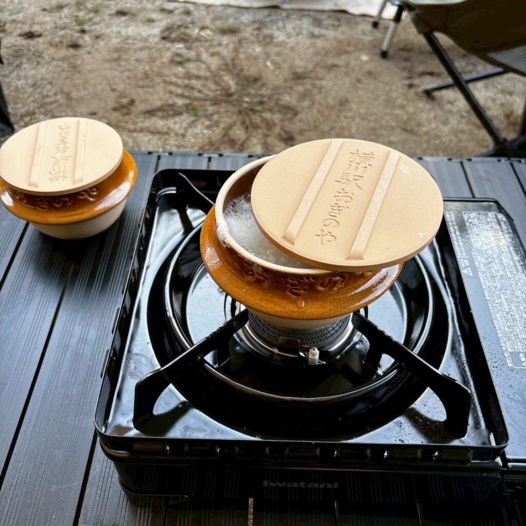 ということでキャンプの朝ごはんとして、峠の釜めしで炊いたご飯を食べることにしました。