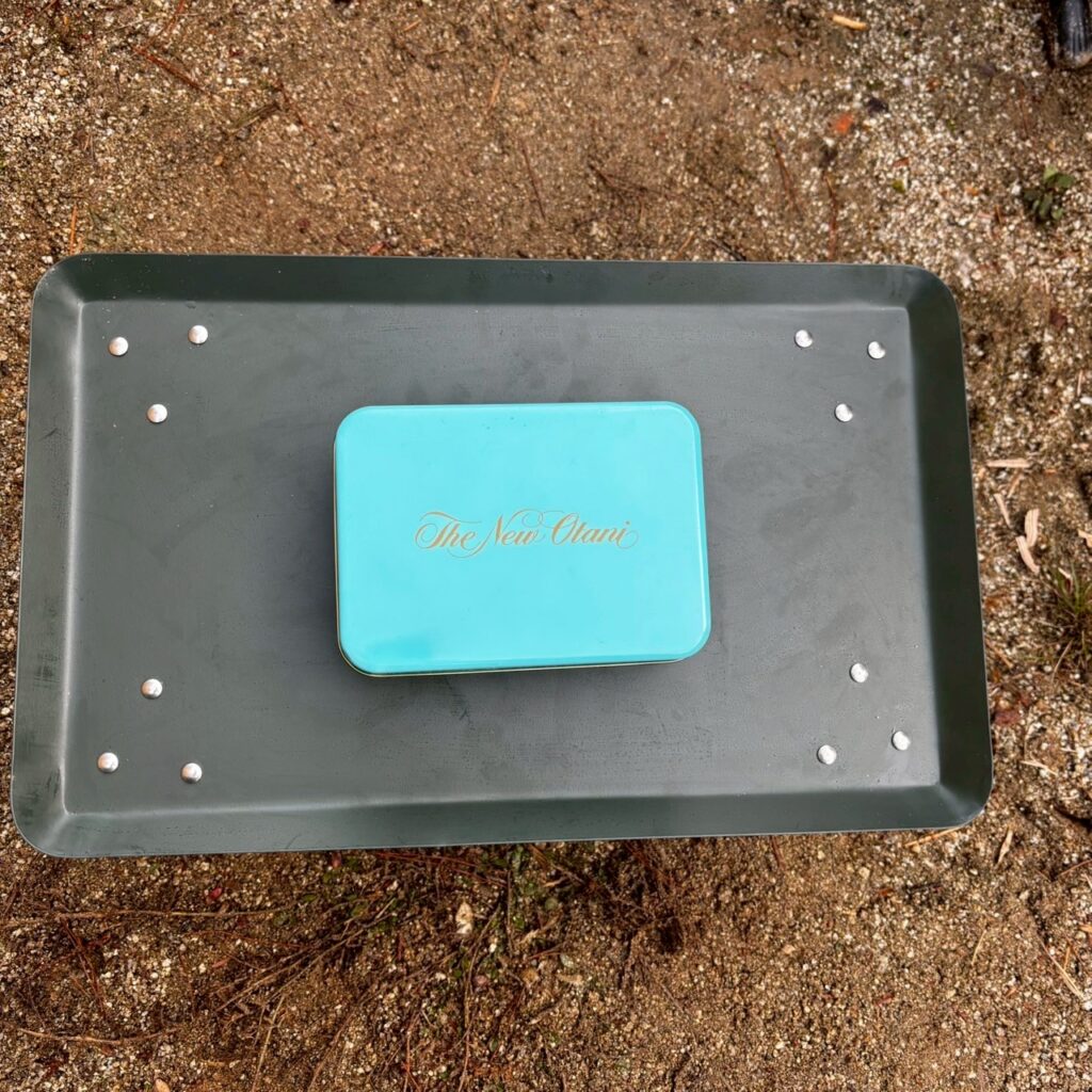 焚火台の奥を焚火にして、手前に炭を置いています。