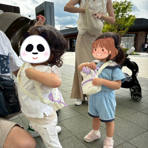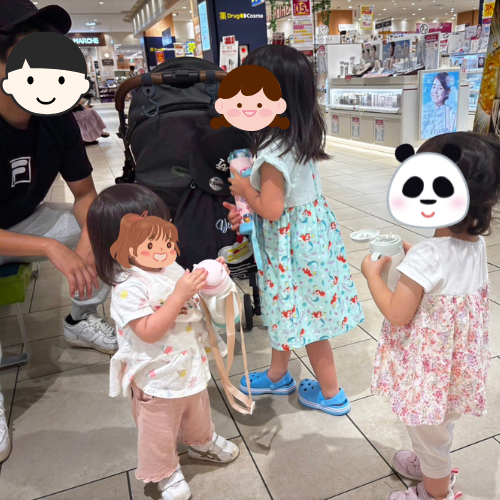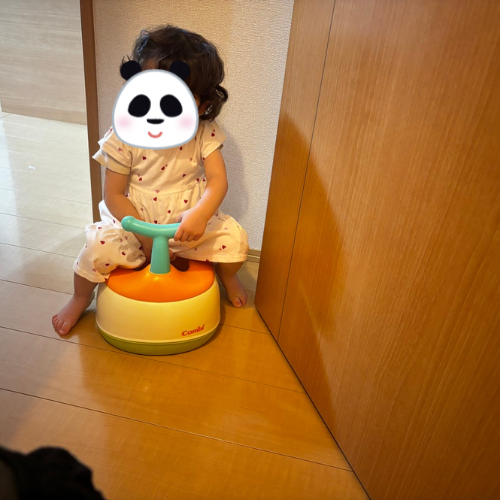 トイトレではないのですが、おかじがトイレに行くと「なーちゃんも!」と言って自分のおまるに乗っています。