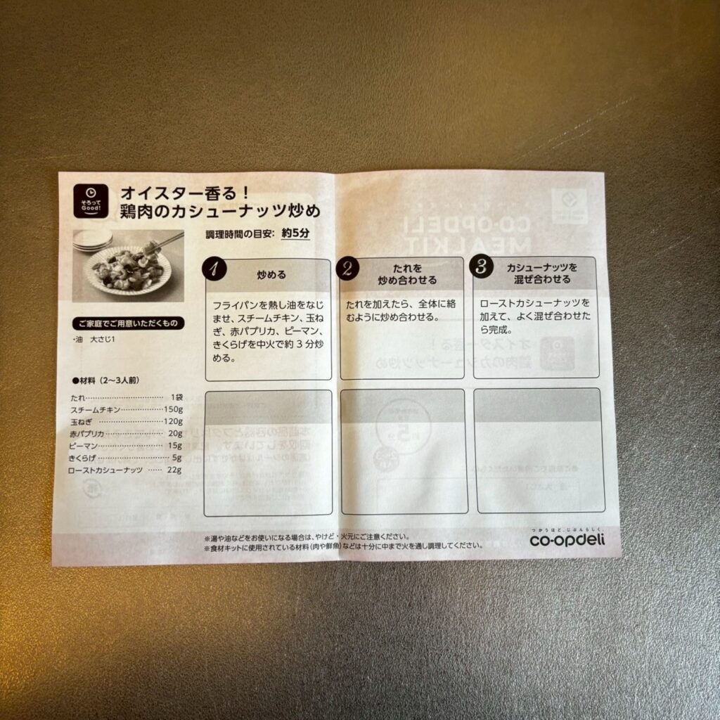 今回はコープデリのミールキットで「オイスター香る!鶏肉のカシューナッツ炒め」を作りました。