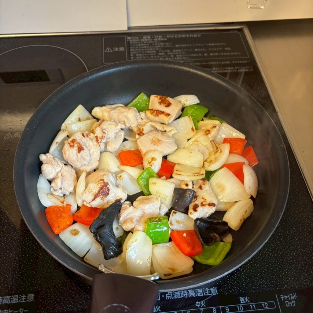 野菜と肉を炒め合わせる。肉はすでに火が通っているので野菜が炒まればOK。