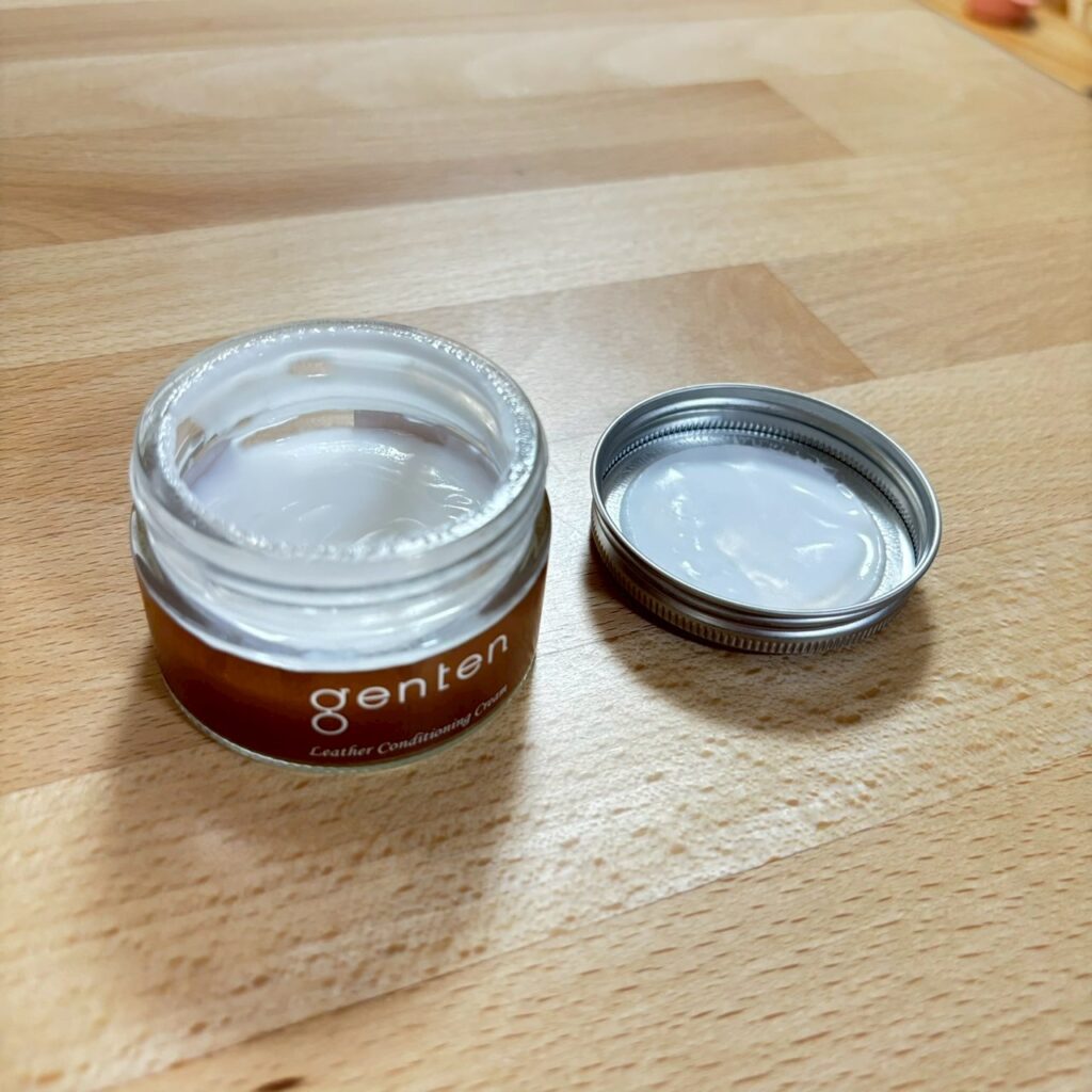 gentenからは2種類のクリームが出ていますが、使用中による傷や乾燥から修復するために、「レザーケア コンディショニングクリーム」を使いました。