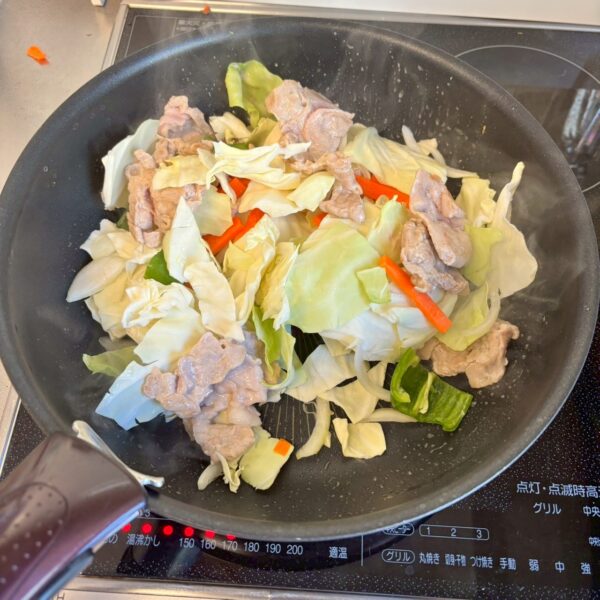 レシピでは5分でしたが、野菜の炒め時間が長引いたため、表記より+3分でした。